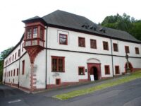 Die Museumsverwaltung befindet sich im Gebäude Pod Jelením skokem 30; im selben Gebäude gibt es eine Bibliothek mit einem Forschungsraum, eine Fachabteilung, eine Wirtschafts- und Betriebsabteilung (Verwaltung der Zweigstellen – der Ständigen Ausstellung Nová Louka in Karlovy Vary, der Königlichen Münzstätte Jáchymov.