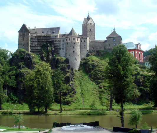 Die Königsburg Loket ist eine gotische Burg. Die derzeitige Gestalt der Burg kommt aus der Regierungszeit Vaclav des Vierten. Die Burg wurde in der 2. Hälfte des 12. Jhs. im romanischen Stil wahrscheinlich als Grenzbefestigung gebaut. Die Burg diente den Königen, Geschlechtern Šlikovi und Herren von Plavno, den Bürgern aus Loket. Im 19. und 20. Jh. wurde sie als Gefängnis genutzt. Kurz nach dem Jahr 1989 wurde die Burg für die Öffentlichkeit geöffnet, die Besichtigungroute führt über die Porzellanexpositionen, Archeologie, Waffenmuseum bis zu den Räumen des ehemaligen Gefängnises.
