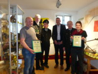 Museumsleiter Roland Weis freute sich besonders, die ehemaligen Bergleute begrüßen zu können. Aus den beiden „Untersuchungsschächten“ bei Poppenreuth und Mähring gibt es nur noch eine Handvoll Ehemalige, die von 1967 bis 1983 unter Tage tätig waren. Größer war die Delegation aus den früheren „Uranwerken Westböhmen“, etwa zwanzig ehemalige Bergleute aus den Gruben Zadní Chodov und Dyleň hatten sich in ihren Paradeuniformen in Mähring eingefunden. Bürgermeister Franz Schöner dankte Roland und Bettina Weis sowie ihren Mitstreitern vom Gelebten Museum Mähring für die Vorbereitungen und die gelungene Ausstellung.