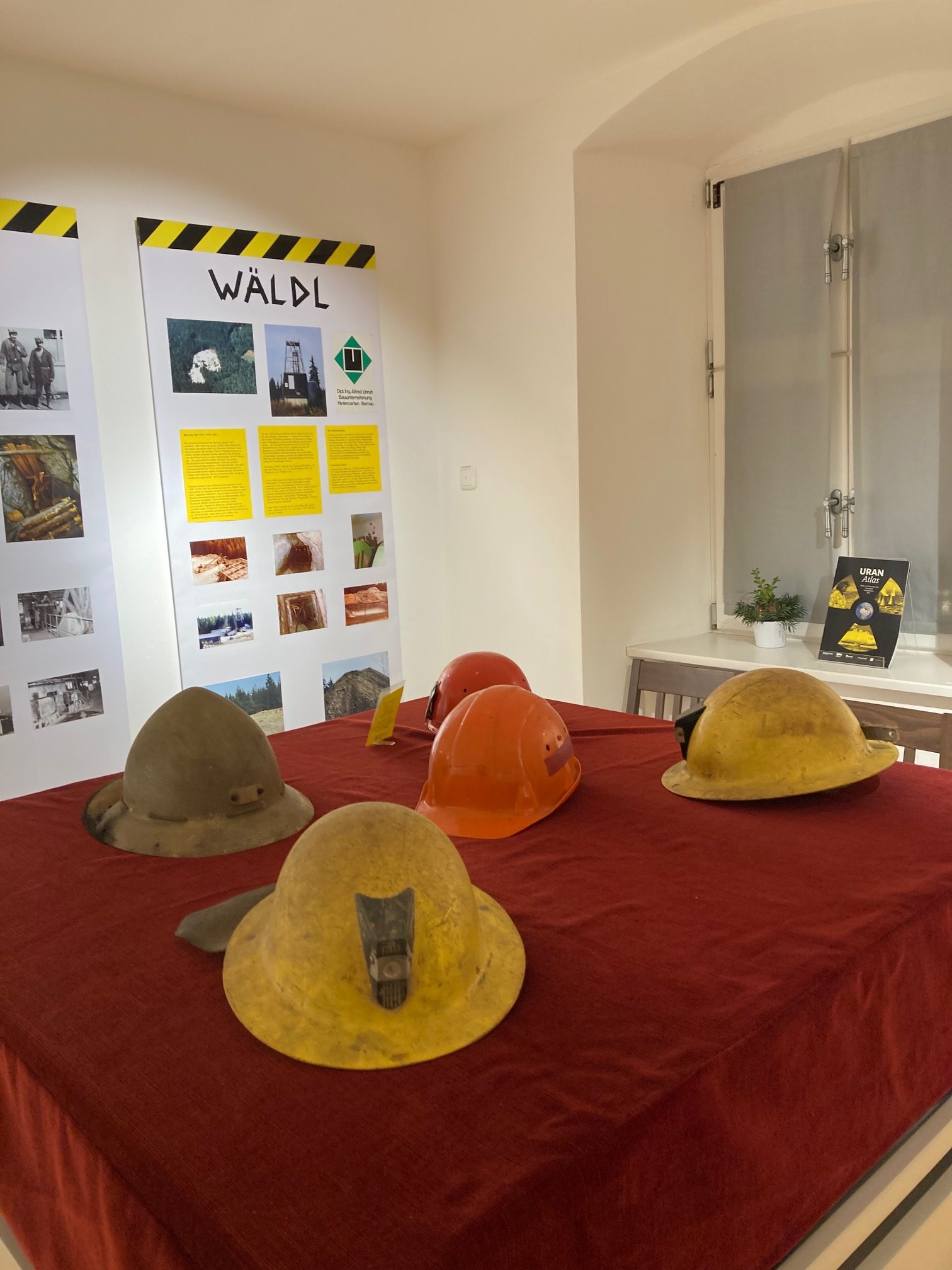 Im gesamten Museumsgebäude sind bis Mitte nächsten Jahres viele Dokumente und Objekte aus der Zeit des Uranabbaus zu sehen: Von Geigerzählern und Bohrhämmern über den Bauplan des Förderturms Poppenreuth bis hin zu dem Original-Korb, mit dem die Kumpel in Mähring in den Schacht einfuhren. Leihgeber waren neben ehemaligen Bergleuten das Bergbaumuseum Planá sowie Ferdinand Wagner vom Mineralienmuseum Mähring, der auch den Anstoß zu der Ausstellung gegeben hat. Von ihm stammen zudem zahlreiche Fotografien von Uranzerzgestein, die in einer speziellen Technik unter dem Mikroskop aufgenommen wurden.