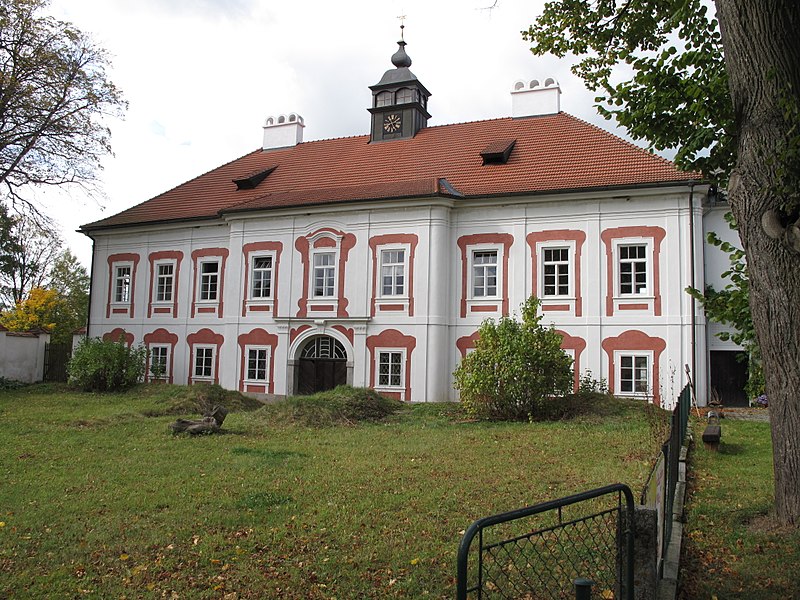 Ein in Stein gemeißeltes Zeichen mit der Jahreszahl 1721 erinnert daran, dass Jan Vilém (Johann Wilhelm) Bernklau von Schönreit dieses Barockschloss bauen ließ. Es handelt sich um ein rechteckiges Gebäude mit Obergeschoss, Walmdach und einem viereckigen Türmchen. Die Räumlichkeiten zu beiden Seiten der Einfahrt haben ein Tonnengewölbe, jene im Obergeschoss eine flache Decke. In unmittelbarer Nähe zum Schloss befindet sich die bereits erwähnte Kirche St. Johannes der Täufer, die in barocker Weise umgebaut wurde und auch als Schlosskapelle diente.