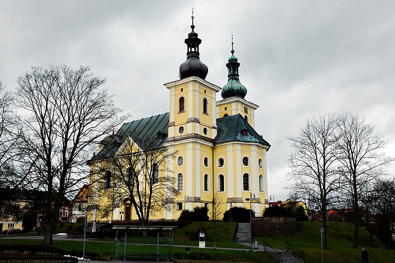 Die Barockkirche steht auf dem Platz der ursprünglichen Kirche, die vermutlich im 13. Jh. von Zisterziensermönchen errichtet wurde. Ihre Mariaweihung könnte die hiesige Wirkung der Zisterziensermönche aus dem Kloster Waldsassen beeinflusst haben. Die dortige Klosterkirche hat nämlich die gleiche Patronin.