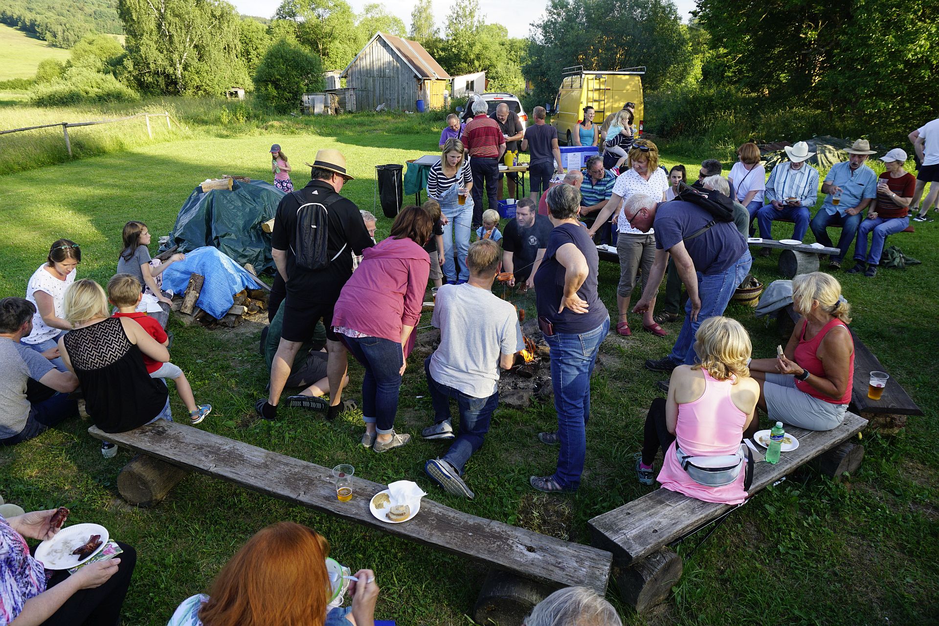 Der Einladung zum 127. Deutsch-Tschechichen Stammtisch des Centrum Bavaria Bohemia (CeBB) nach Rybník (Waier) folgten an die sechzig Gäste, so viele wie schon lange nicht mehr. Immer wieder war die überschwengliche Freude über die Gelegenheit zum Plaudern und Genießen zu spüren, das alle in den letzten Monate so vermissten. Treffpunkt war der Lagerfeuerplatz auf einer ortsnahen Wiese unter freiem Himmel. Gerne hoben die Gäste das Glas zusammen mit CeBB-Organisatorin Veronika Kaštánková zum Prost auf die Wiedereröffnung der Grenze und die vielen Besucher. Sie kamen aus Tschechien und aus Deutschland, darunter treue Stammtischler, aber auch zehn neue Gesichter.
