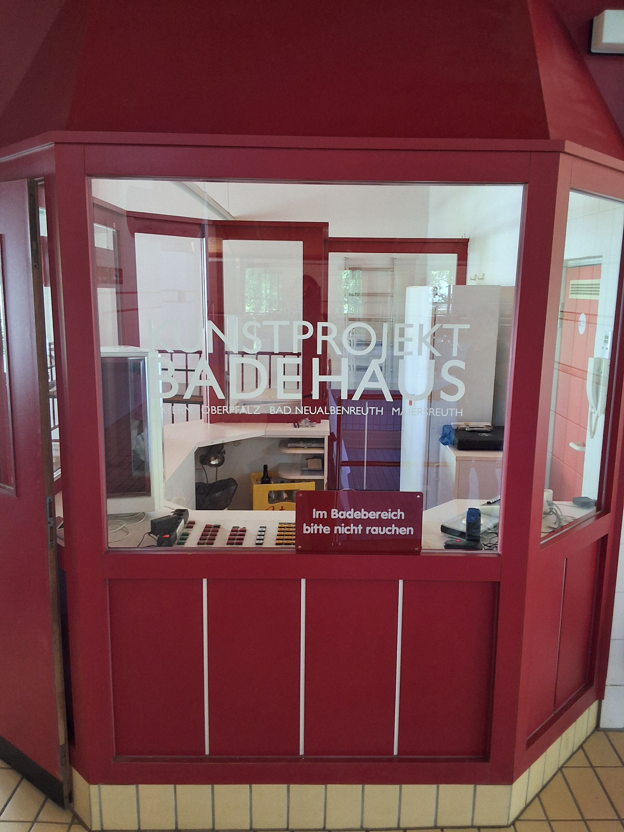 Bald darauf erreichen wir Maiersreuth. Dort gibt das fantastische Kunstprojekt: BADEHAUS. Gerade in dem malerischen Dorf angekommen, spreche ich die erste Person an, die mir ins Auge fällt. Sie stellt sich uns als Petra vor und ist Mitglied im Kunstprojekt BADEHAUS MAIERSREUTH e.V.! Natürlich kennt sie die Künstlerin Susanne Neumann, die 1. Vorsitzende. Mit ihrer Zustimmung dürfen wir das Kunstprojekt und die alte Schule besichtigen, die ebenso ein Teil davon ist. Grandios renoviert, dient sie heute als Künstlerresidenz. KünstlerInnen können sich dort kostengünstig zurückziehen und arbeiten.