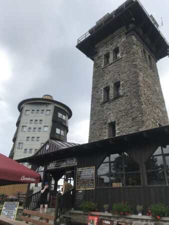 Nach vier entspannten und lehrreichen Tagen ist unser heutiges Ziel der Campingplatz in Babylon bei Domažlice. Zunächst müssen wir den Čerchov bezwingen. Mit seinen stolzen 1041 Metern, ist er die höchste Erhebung der Region. Für uns bedeutet dies, dass wir fast 500 Höhenmeter hinauf und wieder hinunter meistern müssen, 19 km Strecke kommen hinzu. Unser erster Halt, der Kohlenmeiler. Heute ist er bereits aufgelassen, viele Leute aus der Gegend kommen um ihre bestellte Grillkohle zu holen. Am Platz sind einige Vereinsmitglieder. Wir bekommen ein Spezi, unterhalten uns. Oliver, ein Organisator, erklärt uns den schönsten Weg auf den Gipfel, den Čerchov-Steig. Der Weg ist wirklich malerisch, aber er verlangt uns auch alles ab. Mit leichtem Gepäck sicherlich ein Traum, mit unseren 20 kg auf dem Buckel, eine Herausforderung – die wir meistern! Erschöpft, stolz und glücklich sind wir auf dem Gipfel angekommen. Zwei Türme begrüßen uns. Ein Aussichtsturm und ein Fossil aus den Zeiten des kalten Krieges. Wir befreien uns von unserem Ballast, ruhen uns aus, Beine hoch! Nach einer Brotzeitpause geht es hinauf auf den Turm mit einer grandiosen Aussicht. Selbst der Arber zeigt sich. Unten gönnen wir uns Kaffee und Kuchen, bevor es ins Tal hinab geht. Bald verwandelt sich der paradiesische Naturwald in einen Forstwald, ebenso die Wege. Erst als wir das Dorf Pec / Hochofen erreichen wird der Pfad wieder schön. Als erstes begrüßt uns dort eine Quelle mit köstlichem Wasser, kurz darauf stoßen wir auf eine zauberhafte Kapelle. Diese hat der Schriftsteller Jan Frantisek Hruska 1898 in Auftrag gegeben. Es dauerte 10 Jahre bis dieses kleine Prunkstück am 4.7.1909 eingeweiht werden konnte. Von Pec ist es nicht mehr weit bis nach Babylon, der Weg wieder ein Traum. Der Campinglatz taucht auf, wir checken ein. Dieser gefällt uns sehr gut. Er ist einfach (gemütlich), aber alles digital – erste Sahne! Zeltaufbau. Abendessen. Sanitär. Gute Nacht.