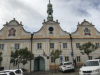 Es schüttet in strömen. Wir sitzen unter einem großen Pavillon im Trocknen, frühstücken, unterhalten uns mit unseren neuen tschechischen Bekannten. Mittags reißt der Himmel auf. Wir machen uns auf nach Kašperské Hory (Berg Reichenstein), wählen den Hochweg über den nahen “Hügel” (805 m). Das lohnt sich, denn wir kommen an der Waldkapelle vorbei, die gerade liebevoll renoviert wird und können, ein Stück weiter, eine tolle Aussicht auf die Burg Kašperk genießen. In der Stadt angekommen zieht uns ihr Charme in seinen Bann. Gemütlich bummeln wir durch die Partnerstadt von Grafenau. Im ehrwürdigen Rathaus besuchen wir eine Fotoausstellung mit fantastischen Aufnahmen aus dem Šumava. In der örtlichen Brauerei genießen wir das köstliche Bier und lassen uns in einem Café den Kuchen schmecken. Zurück geht es über die Sankt Nikolaus Kirche und Sankt Anna Kapelle mit dazugehörigen Friedhof. Auf den alten Gräbern kann man oft den Beruf der Verstorbenen lesen. Wir entdecken die Bezeichnung “Realitätenbesitzer”. Wir sind amüsiert und verwundert. “Was ist das?” Wikipedia gibt uns Auskunft. Im Kemp zurück geht es nach der Dusche ins Bett.