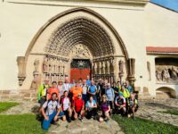 Mit dem Klášter Porta Coeli (Kloster Himmelspforte) unweit der Kleinstadt Tišnov wartete am Ende des Tages ein letztes Highlight auf die Radlerinnen und Radler. Kloster Himmelspforte ist das einzige, noch im Betrieb befindliche Zisterzienserinnenkloster auf tschechischem Boden. Es wurde 1233 von Konstanze von Ungarn gestiftet. Seinen Namen Porta Coeli erhielt es nicht zufällig: Schmuckstück der Klosterkirche ist das wunderschöne Hauptportal mit außergewöhnlich filigranen Steinmetzarbeiten. In der Mitte des Tympanons thront Jesus, darunter sieht man die Apostel und die Stifterin des Klosters. Sowohl zum Portal wie auch zum Innern der Kirche gab es Erläuterungen bei einer kurzen Führung.