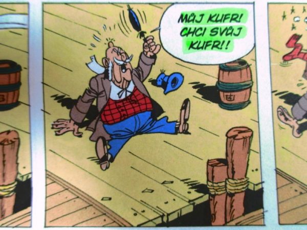 Das klingt nach einem Problem, vor dem man sich am besten drückt. Was ich auch tat. So lange, bis mir diese Regel in einem Lucky-Luke-Comic anschaulich vor Augen geführt wurde. Ein zu spät eingetroffener Reisender ruft dem ablegenden Schiff nach: „Můj kufr! Chcí svůj kufr!“ Er will mit beiden Ausrufen denselben Koffer. „Můj kufr“ – „mein Koffer“, klar. Sobald aber mit „ich will“ das Subjekt in den Satz kommt, dem der Koffer gehört, muß sich das Pronomen zu „svůj“ ändern, und das ist nicht jedem sofort klar. „Chcí můj kufr“ ist also falsch, mag man sich als ausländischer Kofferbesitzer auch noch so sehr wünschen, dass die tschechische Grammatik in diesem Punkt reformiert wird.