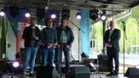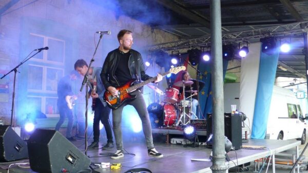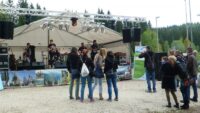 Den Auftakt auf der Bühne auf bayerischer Seite machte die Band \”Soundcheck\” aus Pilsen, die bereits Erfahrungen mit deutsch-tschechischen Musikprojekten sammeln konnte. Im Anschluss begrüßten die Bürgermeister Georg Bauer (Bayerisch Eisenstein) und Michal Šnebergr (Železná Ruda) zusammen mit den CeBB-Mitarbeitern Sebastian Lesňák und Maika Victor-Ustohal die Musikfans aus beiden Ländern. Dann ging es auf der tschechischen Bühne weiter mit \”ehrlichem\” Rock\’n\’Roll der \”Spotlight Brides\” aus Zwiesel, die es vor einer Woche in München ins Finale des Emergenza Bandcontests geschafft hatten und stolz ihr neues Album präsentieren konnten. Ihnen folgten \”Nixon Lads\” aus Strakonice in Südböhmen mit einer Mischung aus Indie, Pop und Punk und \”Shorelines\” aus der Oberpfalz mit härteren Metalklängen. Beim Auftritt der Indie-Rock-Band \”Groovetown\” aus der Region Karlsbad wurde es langsam dunkel, Licht- und Nebelmaschinen ließen so richtige Festivalstimmung aufkommen. Ausgelassen tanzte das Publikum dann zum Abschluss zur Bühnenshow von \”Garage Inc.\” aus Oberfranken.