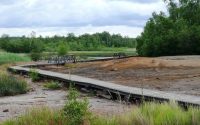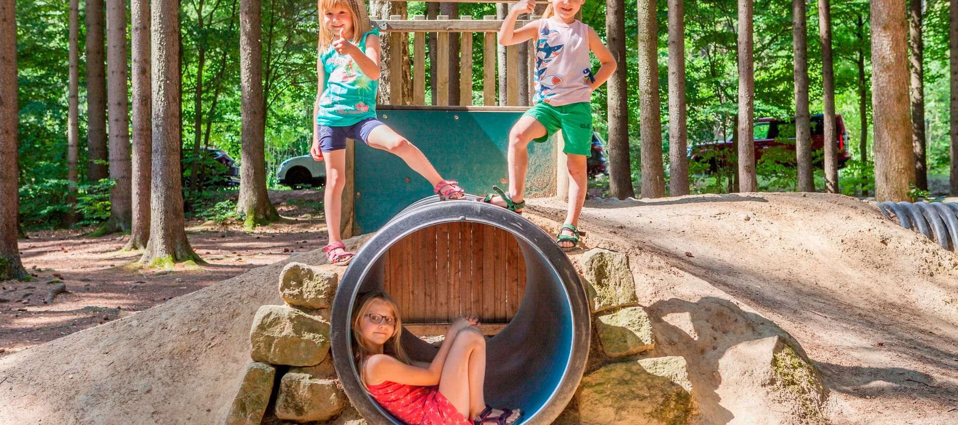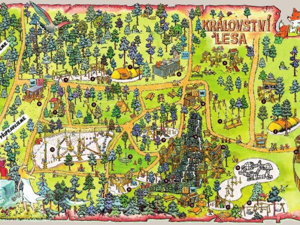 Stezka se dělí na dvě části, na dobrodružnou stezku Holzweg (Dřevěná cesta) a naučnou stezku. Výchozím bodem obou cest je kulatý pavilon na parkovišti. Podél Dřevěné cesty vedoucí strašidelným lesem si mohou návštěvníci prohlédnout ptačí hotel, zahrát si na dendrofon, xylofon a dřevěné bubny a navštívit domy šumu. Cesta vede podél stanoviště se dřevem na házení přímo k labyrintu. Na zpáteční cestě zve návštěvníky k odpočinku sedací souprava. Na lesním rybníku je připravem vor, na kterém je možno se dopravit na ostrov. Už jste někdy pozorovali datla při péči o potomstvo? Pro mladší návštěvníky je zde postaveno hřiště celé ze dřeva. Naučná stezka začíná stromovou stezkou s různými tuzemskými stromy. Návštěvníci se dozvědí mnohé zajímavosti o prostředí pro život stromů a rybníka a dostanou odpovědi na své otázky. Další informace naleznete na internetové stránce!