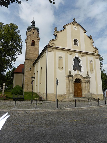 Město, které je poprvé zmíněno v listině z roku 1170, založili pravděpodobně Stauferové. Město bylo povýšeno v roce 1358 císařem Karlem IV. Katolický horský kostel Maria Hilf byl postaven v letech 1771-74 amberským dvorním kameníkem Wolfgangem Dillerem na místě kaple z roku 1680. Zvenku se jedná o budovu s omítnutou sedlovou střechou a zrcadlovými poli. Členité zaoblené kněžiště a loď jsou zaklenuty mělkou lancetovou klenbou. Tři oltáře postavené kolem roku 1772 jsou široce postavené, mají rokokovou výzdobu a pohyblivé postavy. Obrázky bočních oltářů jsou nazaretské, z doby kolem roku 1830.