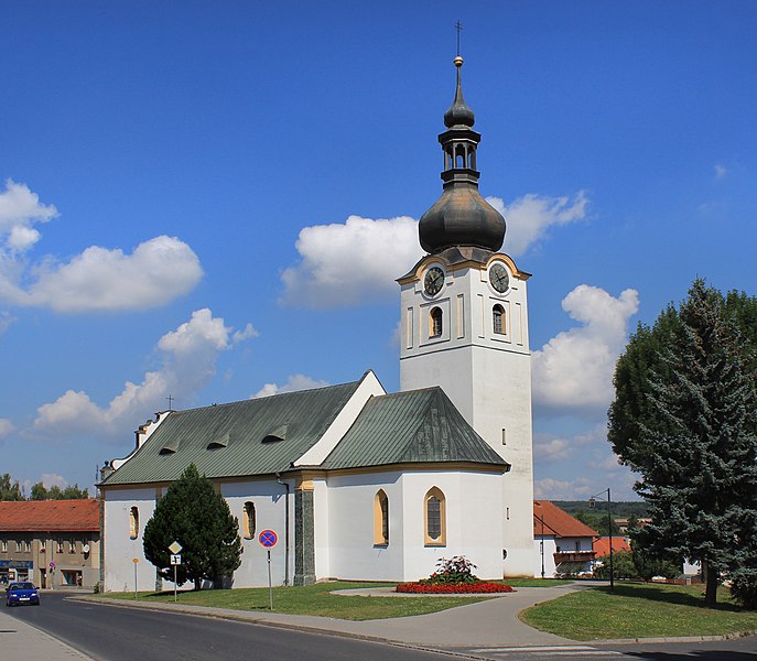 Kostel sv. Jakuba Většího je dominantou Hostouně. Byl postaven při západní straně úzkého náměstí, pouhých několik desítek metrů východně od zdejšího zámku. Je to jednolodní stavba s vysokou hranolovou věží vyrůstající ze západního průčelí kostelní lodi. Kněžiště při východní straně je trojboce uzavřené. Loď je sklenuta stlačenou valenou klenbou s trojúhelníkovými výsečemi, presbytář uzavírá shora koncha s výsečemi. Při západní straně lodi jsou dvě kruchty nad sebou. Fasádu stavby zdobí pilastry s volutovými hlavicemi. Okna jsou sklenuta polokruhem. Hlavní vstup do objektu v západním průčelí lemuje kamenný portál, po stranách s kamennými tordovanými sloupy nesoucími kladí.