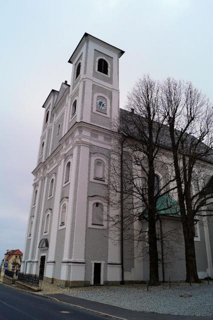 V roce 1688 nechal statkář Fuchsmühler z Froschheimu postavit kopii pasovského obrazu Marie Pomocné. Velký počet návštěvníků si již v roce 1712 vyžádal stavbu poutního kostela Panny Marie. Vysoká obdélníková stavba bez samostatného chóru s úzkými křížovými rameny má nezvykle nízké věže. Nouzové střechy, které byly nasazeny po požáru, již nemohou být vyměněny z důvodu zařazení fasády kostela do obecního znaku. Loď a kněžiště jsou překlenuty společným klenákem. Poutní kaple přiléhá k předposlednímu severnímu lodnímu křídlu a má štukovou výzdobu s listy a stuhou z roku 1725. Baldachýnový oltářní retábl s paprsčitým věncem inscenuje kopii obrazu Panny Marie z Pasova. Mariini rodiče, svatý Joachim a Anna, jsou vedlejšími postavami.