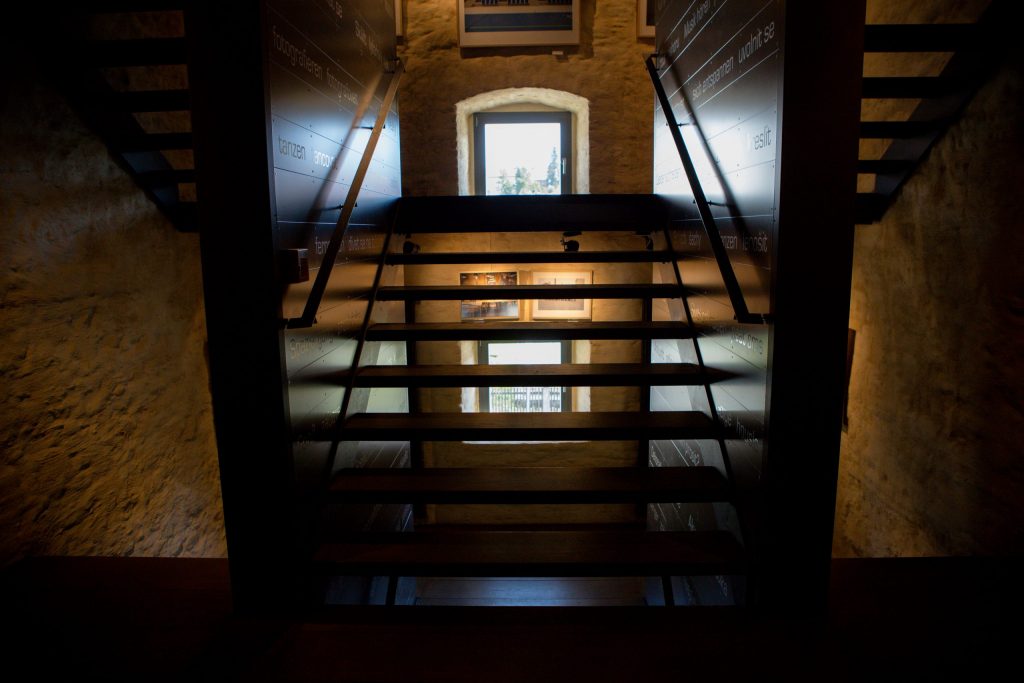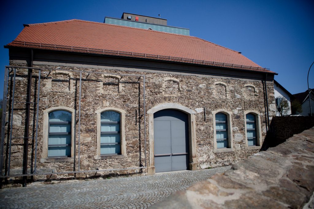 Protože budova neposkytovala dostatečný prostor pro ctižádostivý program centra, bylo nutné ji rozšířit. Architekti propojili nástavbu s konstrukčně rafinovaným statickým zabezpečením: pokrokový princip dům v domě, kdy do budovy byla zasunuta nahoru vyčnívající železobetonová bedna, bezespárově přibetonována ke zdi a dodatečně ukotvena pěti nerezovými kotvami na každý metr čtvereční. Přečnívající betonové stěny byly překryty deskami z recyklovaného skla, na které byly dále přilepeny barevné, potištěné, skleněné desky velikosti 150 x 30 cm. Peter a Christian Brücknerovi ztvárnili sklo jako zděnou konstrukci. Architekti nalezli v Schönsee v místním podnikateli pokrokového a schopného partnera, který pomocí opakovaného sítotisku nanesl na skleněné desky fotografické abstrakce vrstveného skla. Hladký, téměř bezespárový, skleněný povrch se svým monolitickým půvabem jeví jako moderní pokračování kamenného zdiva. Skleněné obložení se uvnitř opakuje na krytech vypínačů a přes den je dalším viditelným znakem modernizace budovy.