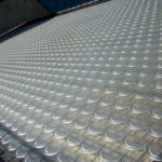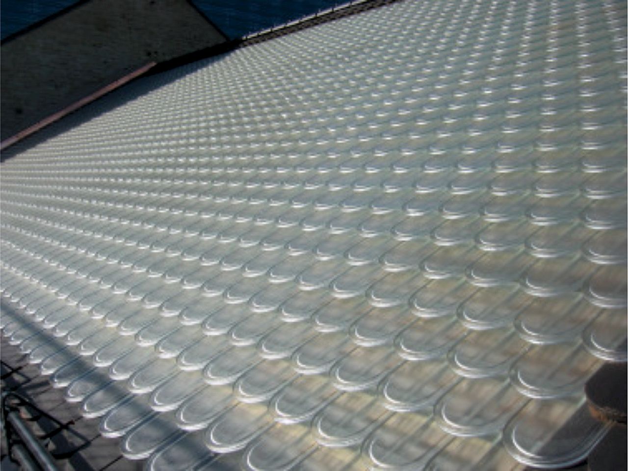 Zatímco věž získala vzhled vyhlídkové terasy, byla nástavba na východní straně, která výškově splývá s okolím, pokryta skleněnými taškami. Průhledná krytina se dnes vyrábí pouze z termoplastické umělé hmoty (PET). Speciálně pro kulturní středisko se pro Brücknery stala místní sklárna dodavatelem skleněných bobrovek. Ale architekti nevycházeli opět jen z tradice, spíše ji do slova a do písmene otočili: pokud se večer v centru koná nějaká akce, je střecha prosvícena barevnými světly. Světlo vychází z projektorů a je pomocí optických vláken rozvedeno pod skleněné bobrovky.