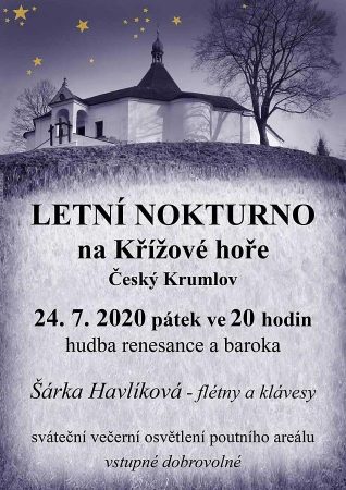 Letní nokturno Renesanční a barokní hudbu představí umělkyně Šárka Havlíková.Místo konáníU Sáňkařské dráhy 462, Horní Brána, 381 01 Český KrumlovJihočeský kraj, Česká republikaTermín 24.07.2020 20:00 - 21:30 Cena (Kč)dobrovolnéPořadatel Kostel svatého Víta v Českém KrumlověMapa U Sáňkařské dráhy 462, Horní Brána, 381 01 Český Krumlov, Tschechien » Otevřít navigaci