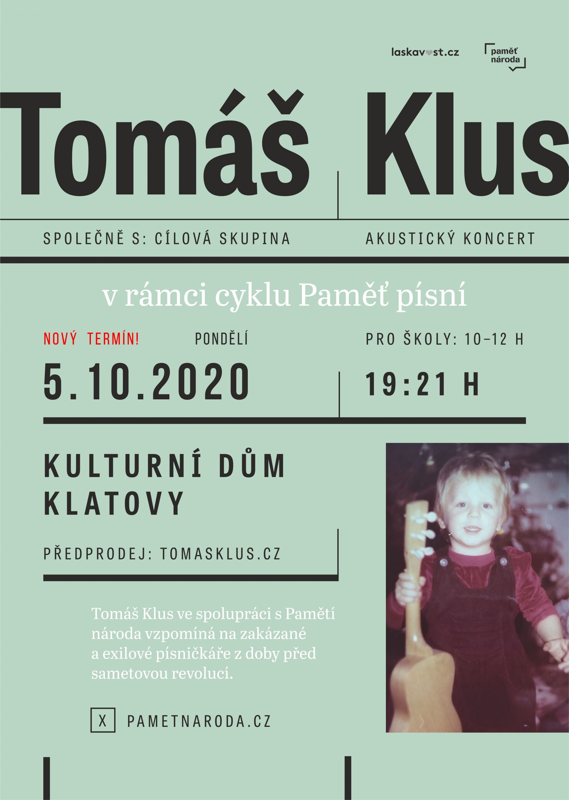 Tomáš Klus – Paměť písní tour Akustický koncert.Místo konáníDomažlická 767, 339 01 KlatovyPlzeňský kraj, Česká republikaTermín 05.10.2020 19:21 - 21:00 Pořadatel Městské kulturní středisko KlatovyMapa Domažlická 767, 339 01 Klatovy, Tschechien » Otevřít navigaci