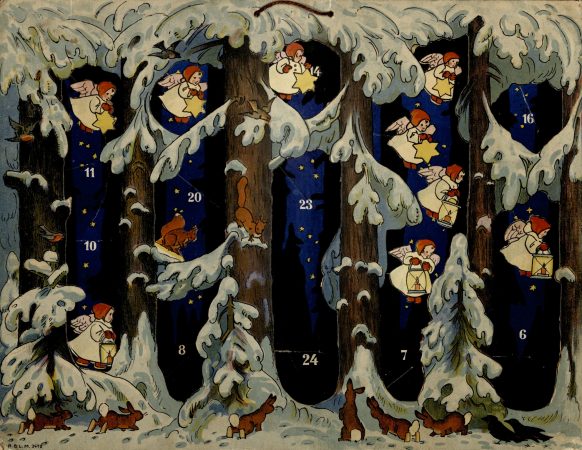 Rozsah je široký. Sahá od prvního obrázkového adventního kalendáře “Im Lande des Christkinds” (V zemi Ježíška) přes nacionálněsocialistický adventní kalendář “Vorweihnachten” (Předvánoční) a “Verschneite Himmelsstadt” (Zasněžené nebeské město) NDR až po současné kalendáře s komiksovými postavičkami nebo medvídkovými Vánocemi.