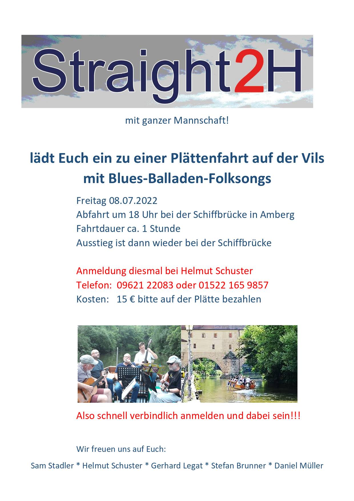 Straight2H Vás zvou na mimořádný koncert: své blues, balady a folkové písničky zahrají během plavby na lodi po řece Vils.