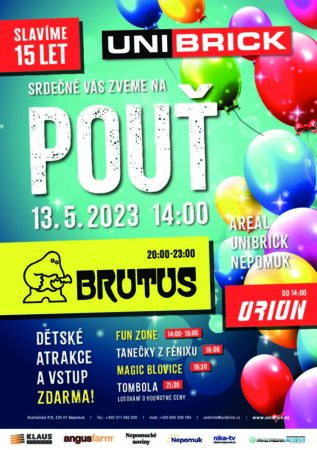Také pouť v Unibricku už lze považovat za tradici. V sobotu ve 14:00 se otevřou brány stavebnin. Odpoledne zpříjemní kapela Orion a otevře se fun zóna (14:00 – 19:00 hodin). Večer je na programu koncert skupiny Brutus (20:00 – 23:00 hodin).