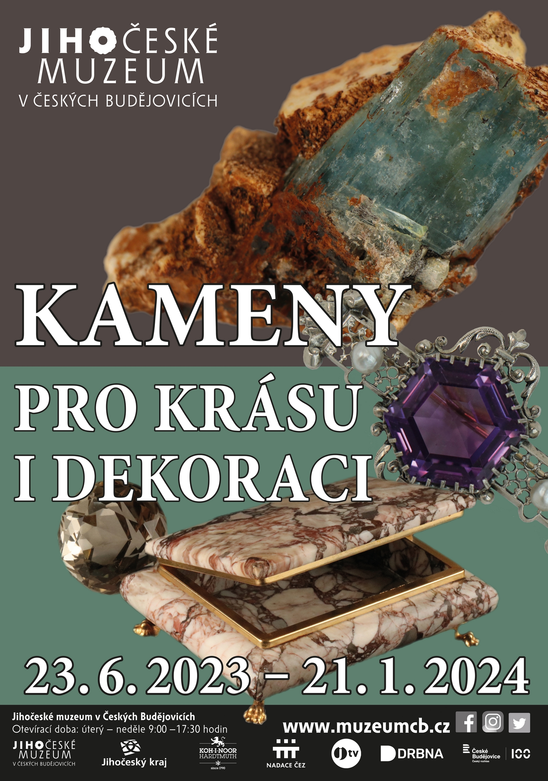 Výstava přibližuje svět drahých kamenů prostřednictvím šperků, dekoračních předmětů nebo užitého umění a prezentuje rovněž ukázky přírodních hornin a minerálů ze sbírek Jihočeského muzea.