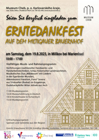 Pracovníci muzea se těší na všechny, kteří přijedou do Milíkova na statek čp. 18, aby příjemně prožili předposlední prázdninovou sobotu. Bližší podrobnosti zájemci získají včas prostřednictvím plakátů, letáků, upoutávek v tisku, na internetové stránce Muzea Cheb a na sociálních sítích.