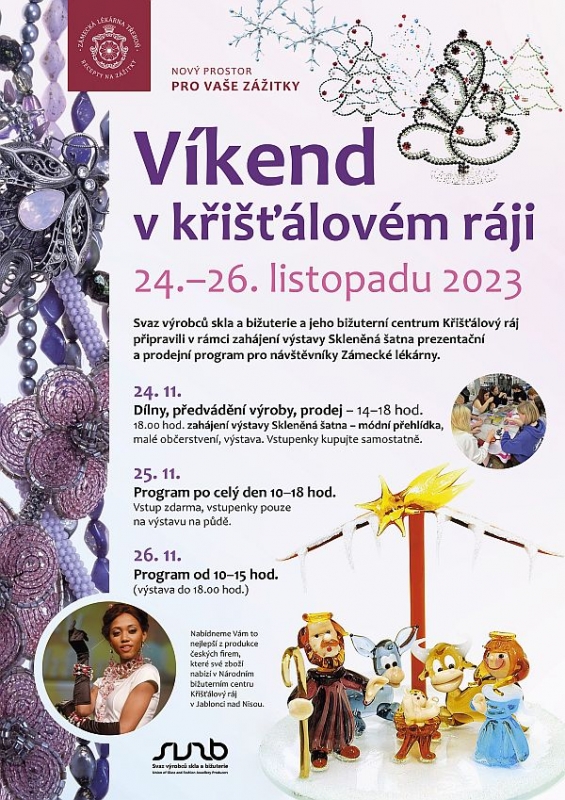 Svaz výrobců skla a bižuterie a jeho bižuterní centrum Křišťálový ráj připravili v rámci zahájení výstavy Skleněná šatna prezentační a prodejní program pro návštěvníky Zámecké lékárny.