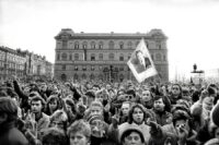 Další soubor fotografií zachycuje období listopadu 1989, respektive tzv. sametové revoluce, kdy padla železná opona a společnost nadšeně vítala pád komunistické diktatury a radovala se z nabyté svobody.