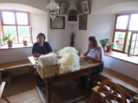 Stříhání ovcí s předením a zpracováním vlny ve Skanzenu Horní Falce v Neusath