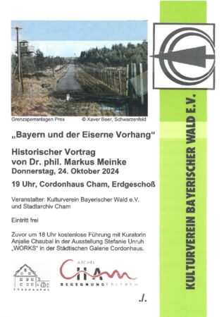 Železná opona – více než 40 let se táhla v NDR a Československu v délce přibližně 800 kilometrů podél hranic s Bavorskem a oddělovala Svobodný stát Bavorsko od sousedních regionů na severu a východě. Ploty z ostnatého drátu, strážní věže, minová pole a těžce ozbrojené stráže charakterizovaly zde i tam obraz druhé strany. A přesto byla československo – bavorská hranice ze západního pohledu často vnímána jinak než její východoněmecký protějšek. Byla však československá “ Železná opona“ skutečně jiná? A odkud se vzalo toto odlišné vnímání, které v některých případech přetrvává ve vzpomínkách na bavorské straně dodnes? Na tyto a další otázky se pokusí odpovědět dr. phil. Markus Alexander Meinke, vědecký pracovník krajského úřadu Horní Falc a pověřená osoba pro přeshraniční spolupráci s Českou republikou.