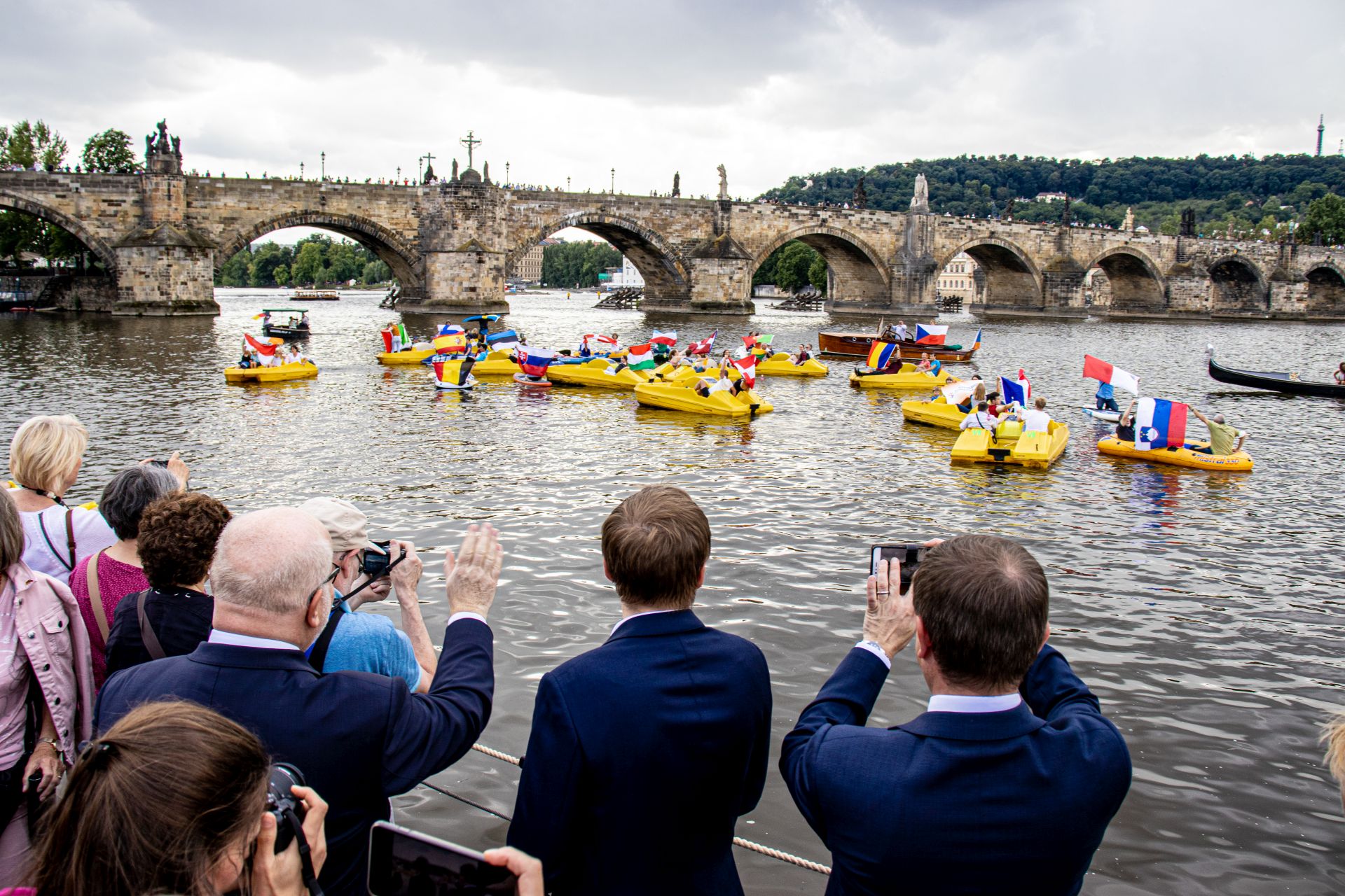 Český ministr zahraničí Jakub Kulhánek se radoval z prohrané sázky proti Ackermann-Gemeinde a Sdružení Ackermann-Gemeinde. Happening na Vltavě se vydařil, na plovoucích objektech bylo vyvěšeno 27 vlajek členských států EU.