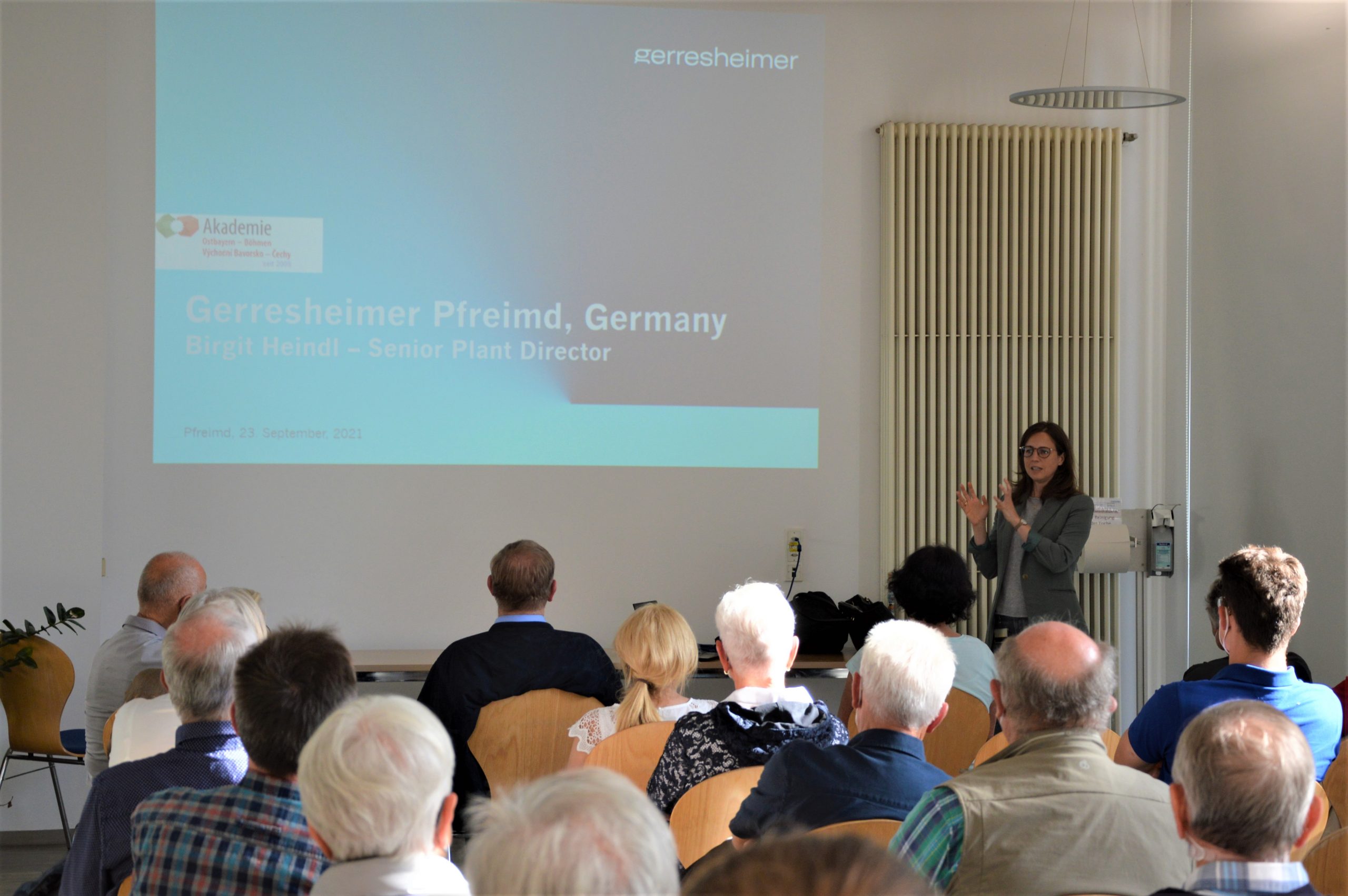 Skupině třiceti hostů akademie pomohl otevřít dveře v závodě firmy Gerresheimer v městě Pfreimd starosta Richard Tischler, který minulý čtvrtek (23.09.21) připravil návštěvu a s podpisem přistoupení k akademii jí propůjčil zvláštní charakter. U brány závodu převzala režii Birgit Heindl, Senior Plant Director Gerresheimer Medical Systems s informacemi o podniku, o lokalitě Pfreimd, o firemní filozofii a rozmanitých inovativních produktech. V roce 2007 se firma Gerresheimer chopila šance, převzít firmu Wilden AG s jejími závody ve Pfreimdu a Řeznu. Do té doby znaly jen zasvěcené osoby podnik ze Severního Porýní-Vestfálska se sídlem v Düsseldorfu, dnes po 14 letech je firma Gerresheimer v Horní Falci pojem. Starosta Tischler projevil hrdost na to, že se svým městem patří k celosvětově působící podnikatelské skupině s téměř 3.000 zaměstnanci v sedmi výrobních závodech v Evropě, USA, Brazílii a Číně. Význam zdravotnické techniky se stane zřejmým, když Birgit Heindl představí v prezentaci podnik a upozorní, které produkty ze zdejšího závodu jdou do celého světa: