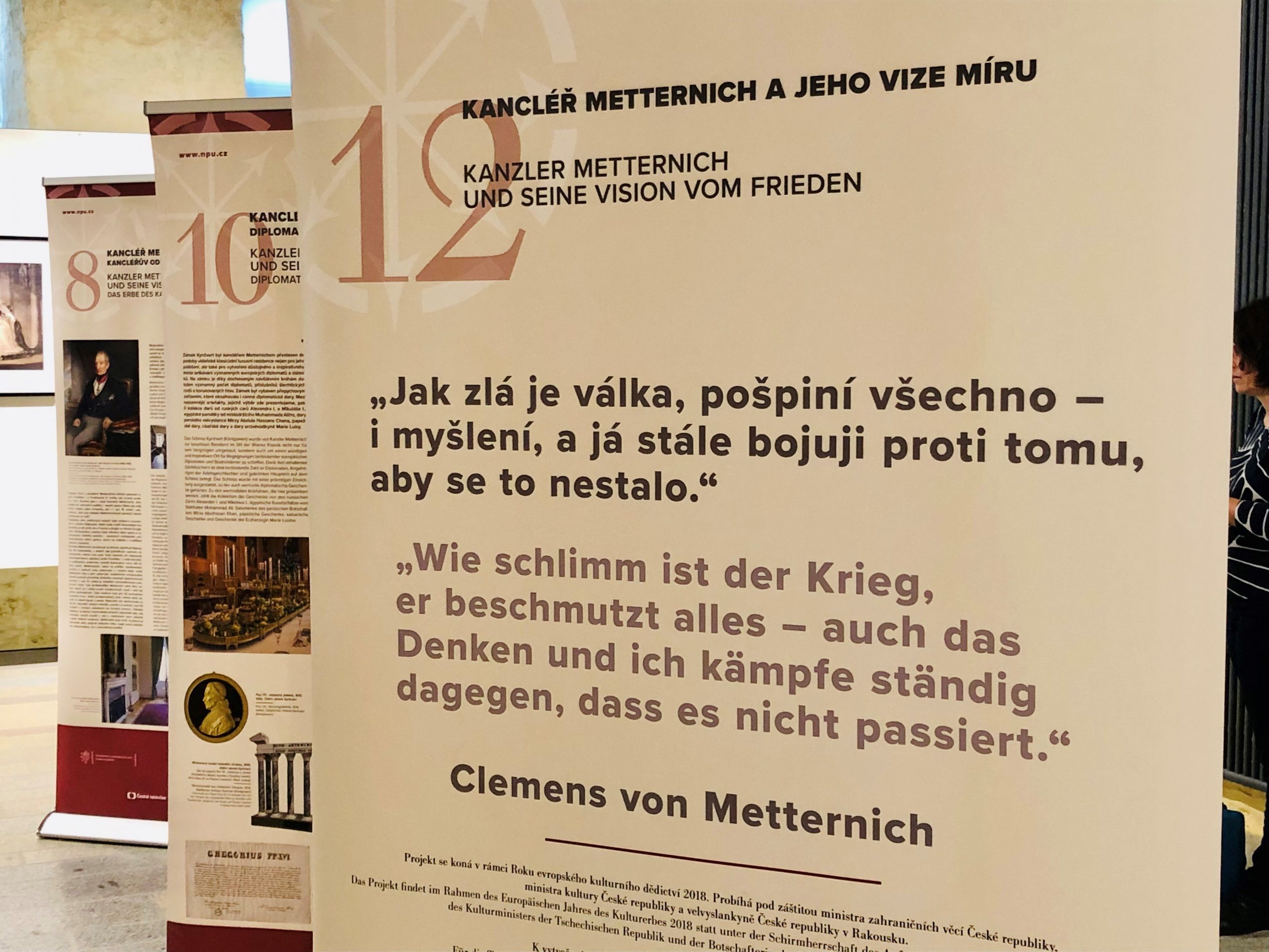 Kníže Klemens Metternich, rakouský velvyslanec, ministr zahraničí a státní kancléř na císařském dvoře ve Vídni využíval zámek Kynžvart v českém lázeňském trojúhelníku, patřící knížecí rodině Metternichů, jako letní sídlo. Zámek, který po druhé světové válce přešel do státního vlastnictví je od přelomu tisíciletí po rozsáhlé rekonstrukci opět přístupný veřejnosti a je v péči Národního památkového ústavu České republiky. Tento věnoval jako vzpomínku na někdejšího zámeckého pána a diplomata, který v rozhodující míře ovlivnil státní zřízení v období po Napoleonovi výstavu “Metternich a jeho vize míru”.