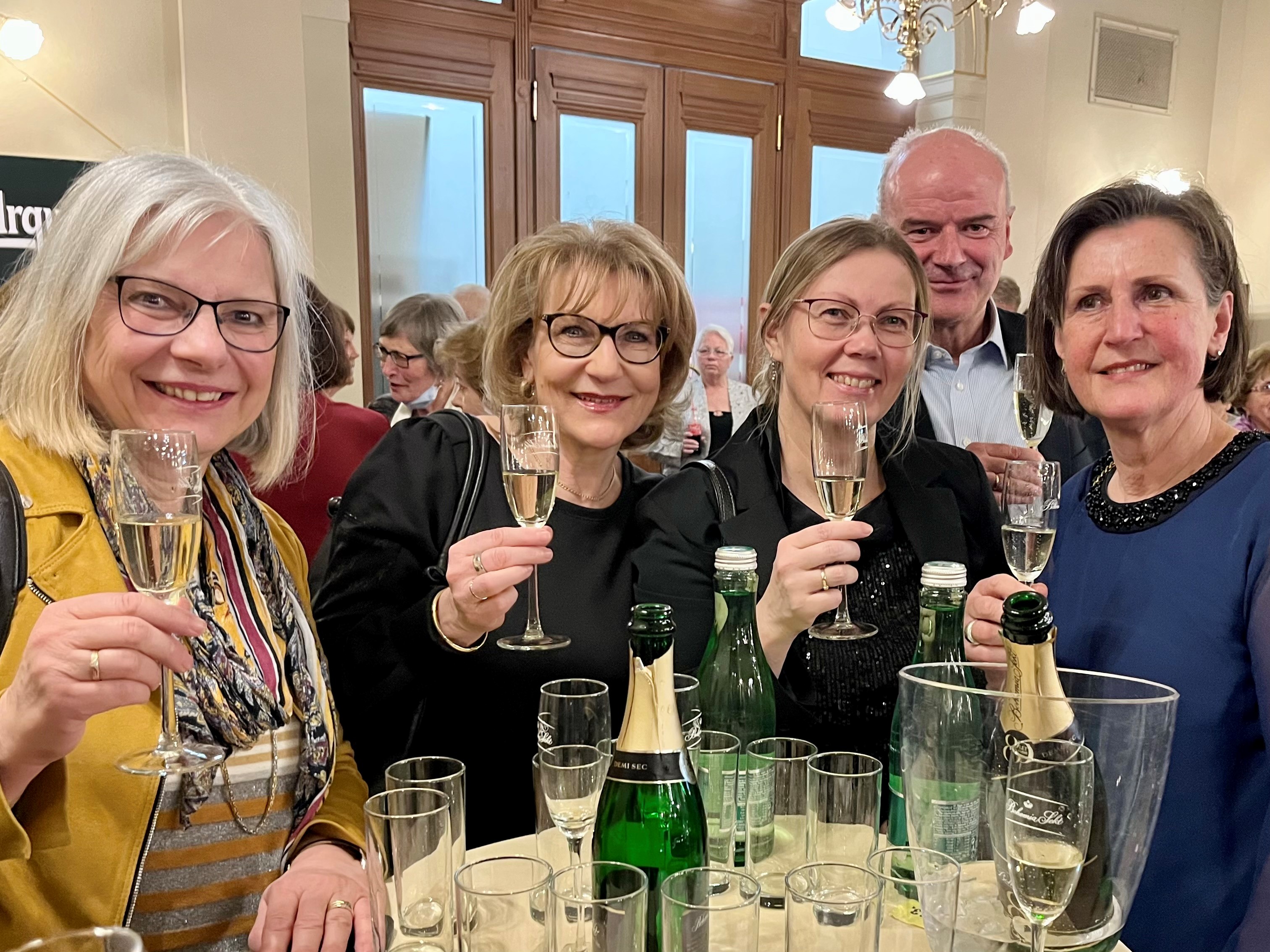 Před vyvrcholením večera rezervoval tým vedoucích výpravy s Kamilou Spichtinger, Gabi Dlubal a Susanne Setzer v sousedícím hotelu Slovan místa na večeři. Dobře posílení se pak účastníci zájezdu přesunuli o pár kroků dál, do nádherné secesní budovy Beseda.