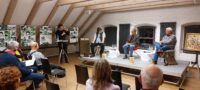 Organizátor bb-talk David Vereš, který je od počátku zaměstnancem CeBB, sestavil vynikající diskusní panel zkušených odborníků na téma Švejk. Moderátorem je rozhlasový žurnalista Ferdinand Hauser, narozený v Halle/Saale (Radio Prague International). Vedle něj je to Milan Karpíšek, který už při hudební předehře naznačuje, že hosty bude obtížné zastavit, když v české, německé nebo americké hospodě zahraje Švejk band. Uprostřed sedí Kenneth Hanshew, literární vědec a bohemista z Univerzity v Řeznu. Skupinu doplňuje Arthur Schnabl, literární průvodce řezenské cestovní kanceláře “Begegnung mit Böhmen”, jejíž prohlídky po stopách Švejka patří k nejoblíbenějším. Hned na úvod se švejkovsky usmál, když se přiznal, že Švejka ještě nečetl. “Zato umím mluvit kuchelböhmisch”. Do mikrofonu mumlá sotva srozumitelná slova, stejně jako Jaroslav Hašek nechá svého Švejka v originálním díle mluvit česky s německými prvky, tedy “böhmakeln” což je jiný výraz pro rakouskou “vídeňskou” němčinu, když se mísí s českými prvky.