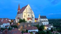 Po přestávce pokračovala cesta do Znojma, kde se skupina rozdělila do dvou centrálně umístěných hotelů v centru města. Na závěr prvního dne čekala na návštěvníky na náměstí vyjížďka malým silničním vláčkem, aby si prohlédli velmi zachovalé středověké centrum starého hradního a královského města. Z vysoko položeného kostela svatého Mikuláše, dominanty Znojma, vedle radniční věže, se otevřel nádherný výhled na údolí řeky Dyje.