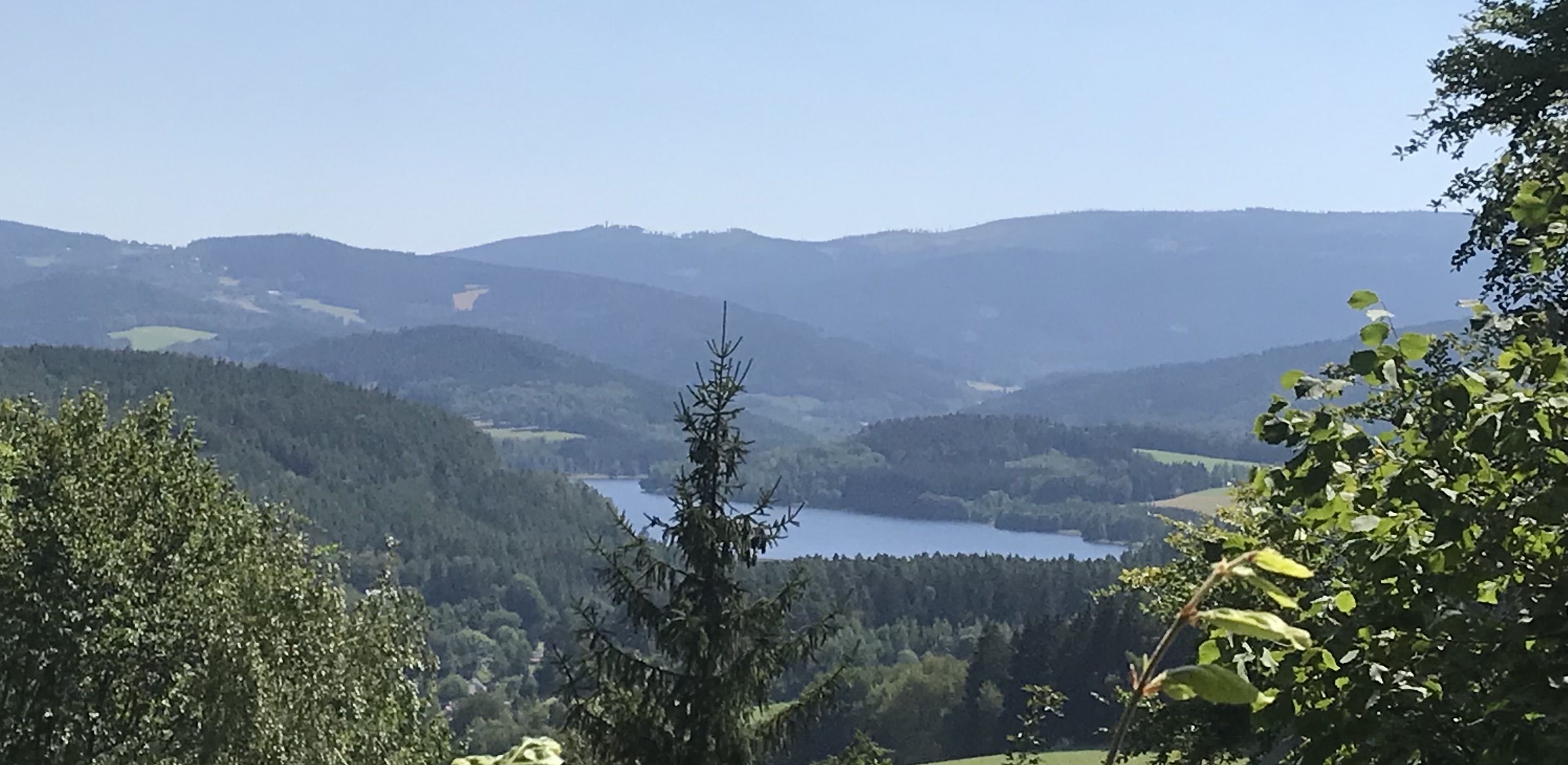 Včerejšek zanechal své stopy. Sluníčko nám pořádně zatopilo, hlavně mně. V noci mě bolela hlava, ale ráno už je to lepší. Ubytovali jsme se na tři dny. Dnes si chceme odpočinout krátkou prohlídkou s lehkými zavazadly. Začínáme pohodovým výstupem na horu Hraničář (832 m). Nádherné stezky nás vedou překrásnou přírodou. Střídají se úseky lesa a luk. Je další horký den. Opatřili jsme se dostatkem vody a deštníkem – respektive dnes slunečníkem. Když dosáhneme vrcholu, jsme odměněni výhledem na horu Ostrý. Opět nacházíme pozůstatky minulosti. Kolem stojí velké betonové bloky, jejichž účel a využití je nám zcela nevysvětlitelné. Jsou tu také staré cedule, které už rozežrala rez. Po svačině malebná cesta pokračuje. Dojdeme k místu s nádherným výhledem na Nýrskou přehradu a brzy poté ke zbytkům hradu Pajrek (Bayereck), pohraničního hradu ze 14. století, který byl v roce 1472 vypálen. Nový pán, rovněž loupežný rytíř, jej nechal přestavět, ale po jeho popravě v roce 1520 postupně zchátral. Zřícenina musela být kdysi impozantní pevností. Do města se vracíme volným tempem podél toku řeky a putujeme kolem přírodního divadla Nýrsko. Opět jsme, hlavně já, osvěženi. To byl ale pohodový den.