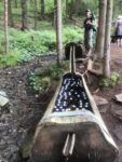 Dnes je neděle. I pro nás. A tak si dopřejeme pořádnou snídani v kempovém bistru. Lahodné! Posilněni se vydáváme na nenáročnou procházku. Většinu času jsme na to sami. Relaxujeme na lesních cestách, obklopeni krásnou přírodou. Opět zažíváme překvapení. V polovině trasy narazíme na dav lidí, kteří se vydávají na pouť k neznámému cíli. Následujeme je a chceme vědět, co to je. Pramen! Ne jen tak obyčejný se sladkou vodou. Milí lidé k němu přidali pivo (nealkoholické) a limonádu. Ve vydlabaných kmenech stojí lahve chlazené pramenitou vodou. Každý se může obsloužit sám, otvírák je k dispozici. Stejně jako všichni ostatní si nápoj vychutnáváme. Jaký to promyšlený a skvělý nápad! Na etiketě nacházím následující webové stránky: www.pivovar-strakonice.cz.