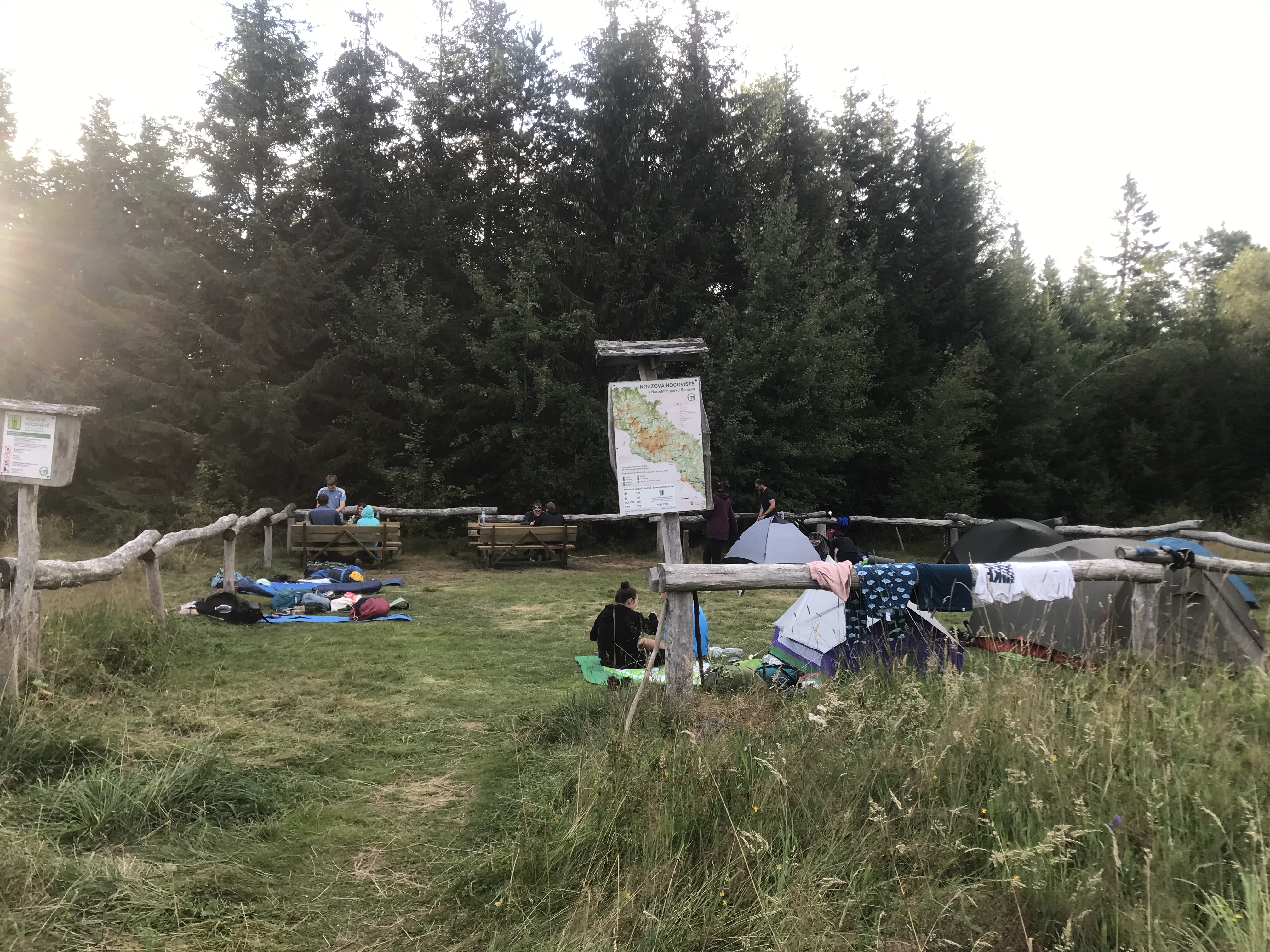 Po tomto nápoji se vydáváme zpět po lesní cestě. Ta nás zavede na naprosto úžasné místo. Široké, divoké louky, alej s majestátními, úctyhodnými stromy, starý sad a fantastický výhled do krajiny. Slovy se to nedá popsat. Sedíme na lavičce a vychutnáváme si toto kouzelné, až mystické místo. Večer se v Kempu setkáváme s jedním párem. Ona pochází z Kanady a má pákistánské kořeny, on je Francouz. Oba pracují pro jednu jordánskou nevládní organizaci. Sedíme spolu u ohně a popíjíme pivo, dokud nezačne pršet.
