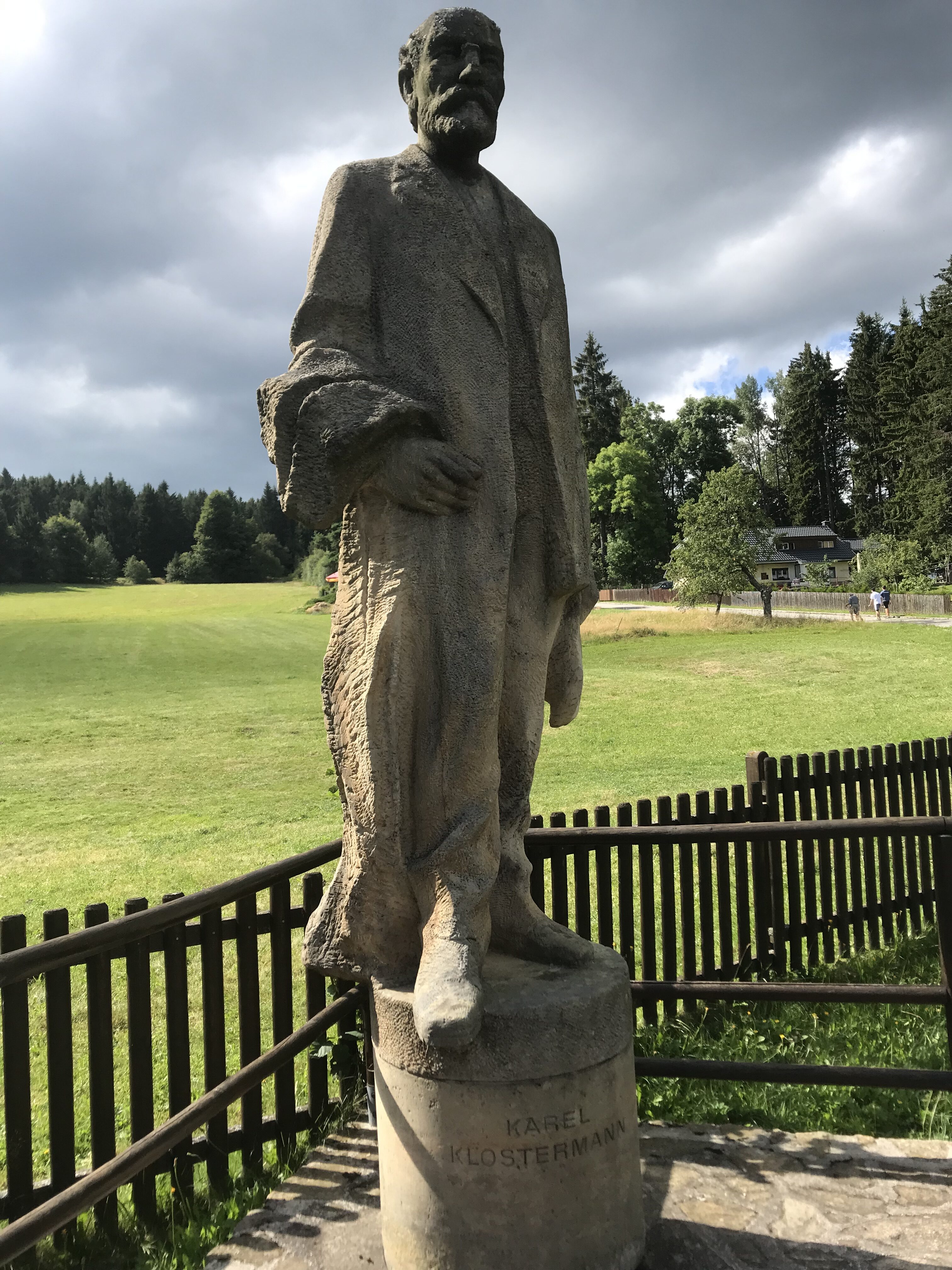 Opouštíme malý kemp a jdeme lesem, přes louky, podél polí, přes malé, hezké vesničky s láskyplně opravenými domy a statky. Přicházíme do Stach, pěkného městečka. Objevujeme kavárnu a vychutnáváme si výborné koláče a kávu. Pánové u vedlejšího stolu si dávají své nedělní dopolední pivo. Stachy jsou pohodové turistické městečko, kde se scházejí hlavně čeští hosté. Během našeho krátkého pobytu se tu cítíme jako doma. Posilněni chceme pokračovat, procházíme kolem hřbitova a jsme zvědaví. Máme štěstí, protože objevujeme hrob druhého slavného Klostermanna. Josefa Klostermanna, šumavského velikána známého jako Rankl Sepp. Byl jednou z postav románu Karla Klostermanna „V ráji šumavském“. Sepp dostal svou přezdívku podle velké lesní mýtiny (Ranklov / Ranklau), která se nacházela hluboko v lesích mezi Horskou Kvildou a Stachy (Stachen). Pokračujeme směrem k našemu cíli Vimperku (Winterberg). Tam chceme v kempu postavit stan a zůstat 2 až 3 dny. Nejprve dorazíme do Zdíkova. Na rozcestí nevíme zcela přesně, kterým směrem se vydat, a tak si vezmeme na pomoc mapu. Pak nás osloví jedna všímavá Češka. Když se dozvěděla, že chceme jít do Vimperka, nabízí nám svezení svým autem. Je horký den, a tak spontánně souhlasíme. Náš anděl mluví velmi dobře německy a pracuje v pečovatelské službě ve Freyungu. Během krátké cesty autem nám vylévá své srdce a my se dozvídáme o jejím tragickém životním příběhu. Když dorazíme do Vimperka, spontánně jí předávám náš záchranný přívěs. Modlíme se, aby jí dobrá duše z Konnersreuthu dokázala pomoci. Do kempu to není daleko. Je ještě brzy. Když dorazíme na místo, čeká nás nemilé překvapení. Kemp už neexistuje. Byl přeměněn na chatové středisko. Co teď? Spontánně volám Hansi Schopfovi, který má v regionu velmi dobré kontakty. Dává mi telefonní číslo na Martina Sichingera z Vimperka. Oba jsou dobří přátelé a spoluorganizátoři festivalu „Šumava Litera“.