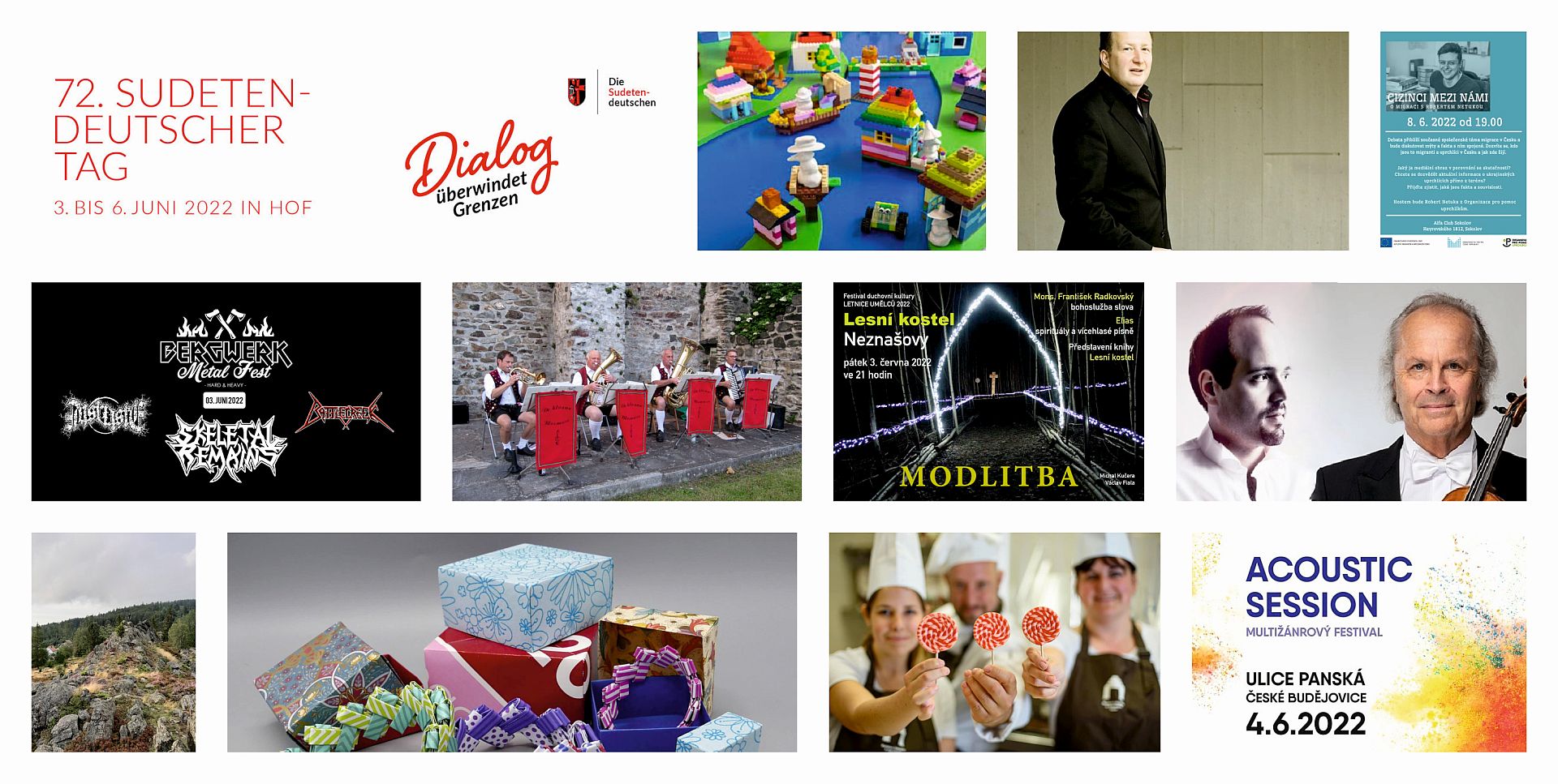 72. sudetoněmecký den se bude konat v Hofu od pátku 3. do neděle 6. června 2022 pod heslem “Dialog překonává hranice”. Četné informační stánky a workshopy poskytnou vhled do sudetoněmecké historie a kultury.