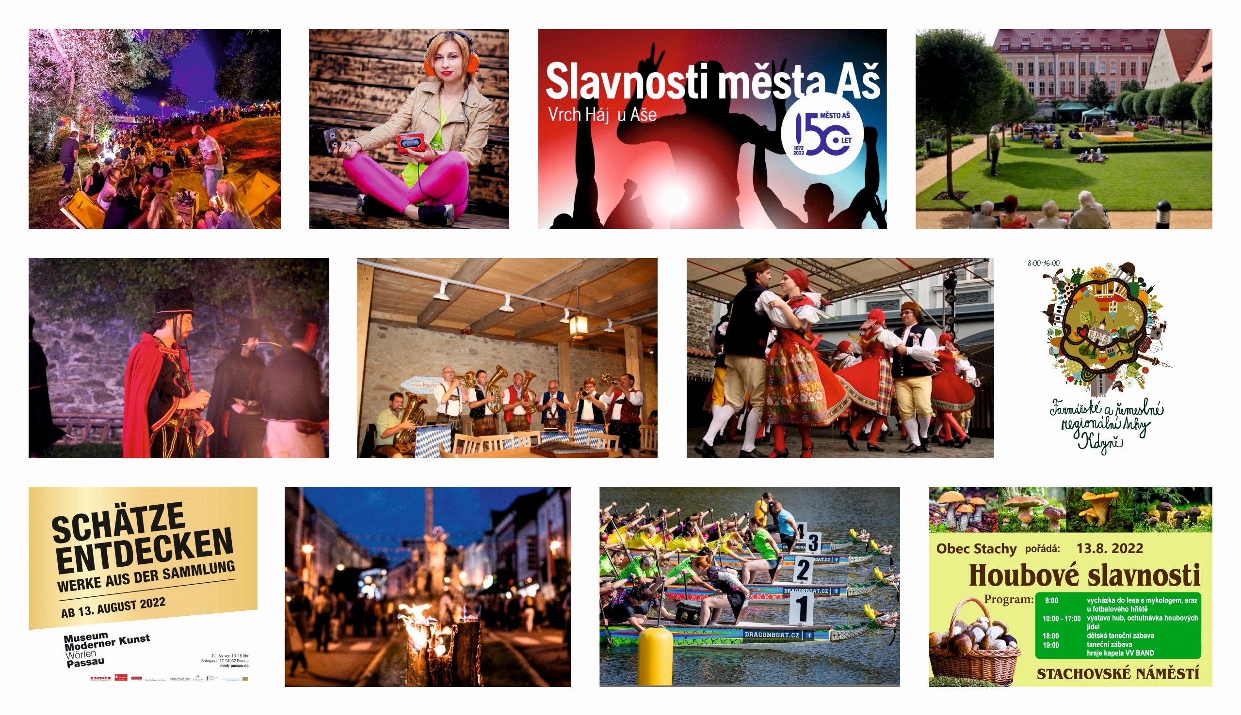 Víkendové slavnosti města Aš jsou jednou z největších kulturních akcí v Karlovarském kraji. Na bohatý kulturní program a našlapanou hudební stage se všichni návštěvníci mohou těšit v pátek 12. srpna 2022 od 12:00 hodin. Na pódiu vystoupí zvučná jména české i slovenské scény jako Pokáč, Čechomor, Michal Hrůza, Kpt. Demo No Name nebo Tereza Mašková.