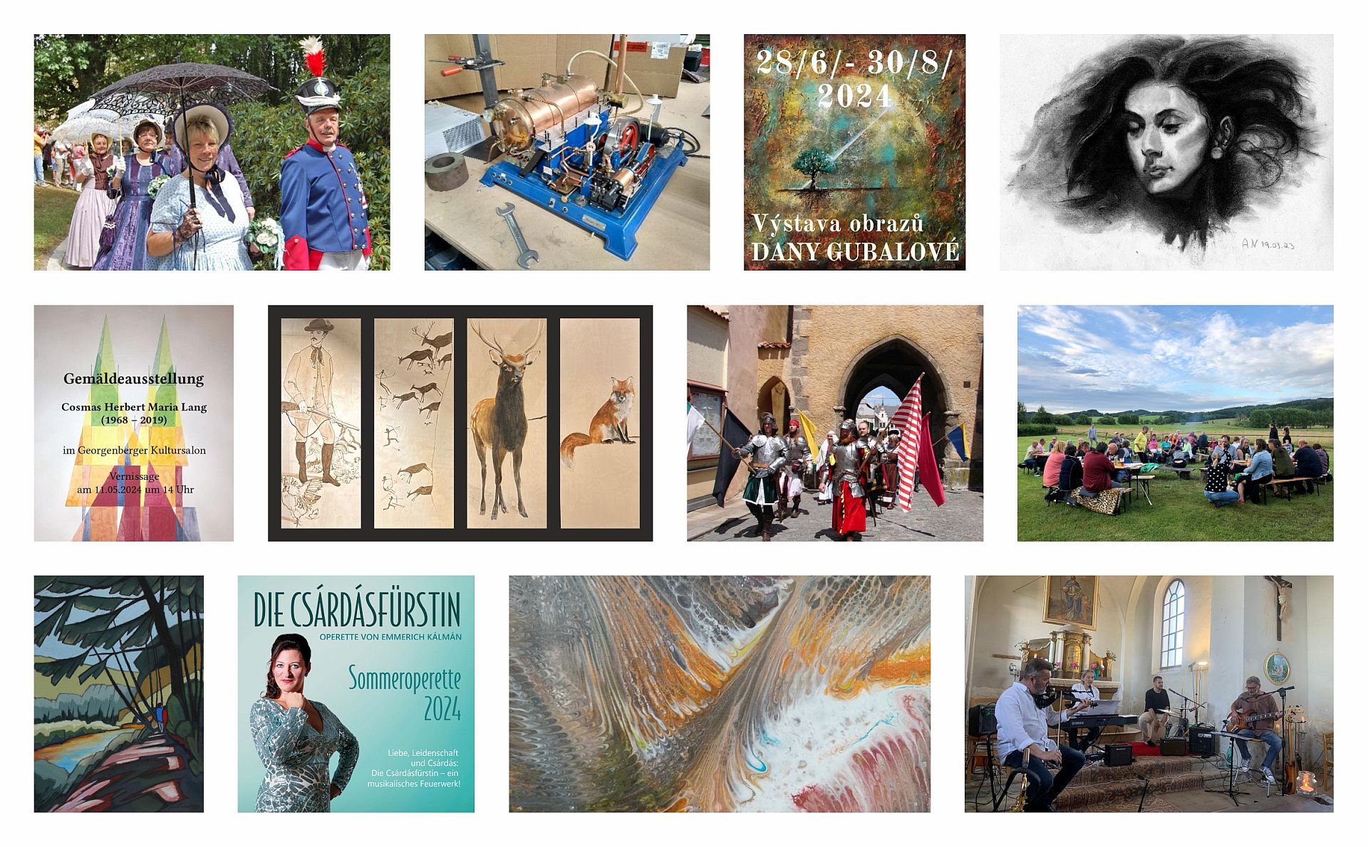 Obrazy a díla umělce Cosmase Herberta Maria Langa si lze prohlédnout v Kulturním salonu Georgenberg v budově radnice do pátku 28. června 2024. Jeho tvorba zahrnuje široké spektrum od obrazů v různých technikách a grafiky až po sochy a řezby.