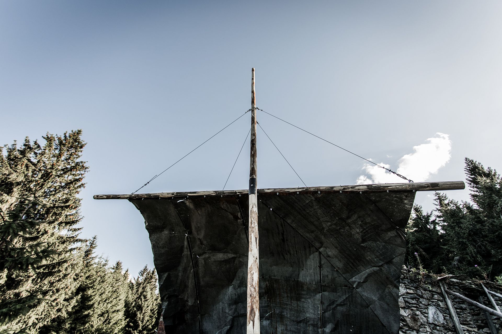 „Plachta, která může být dočasným přístřeším, ale také plachta s ráhnem pomyslné lodi (života), která je hnána větrem osudu, a která na nějaký čas zastavila právě tady v Bügellohe.“