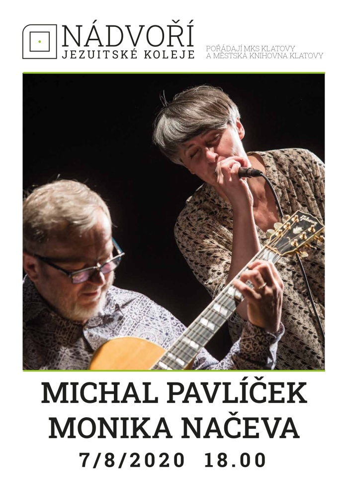 Michal Pavlíček und Monika Načeva Akustik-Konzert von Monika Načeva und Michal PavlíčekVeranstaltungsortJezuitslá kolej KlatovyPilsner Bezirk, TschechienTermin 07.08.2020 18:00 - 20:00 Veranstalter Stadtkulturzentrum KlatovyKarte Jezuitslá kolej Klatovy, Tschechien » Routenplanung öffnen
