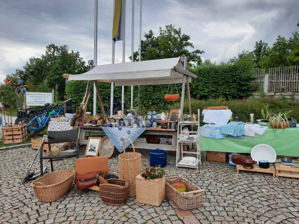 Korbwaren, Keramik, Holzartikel, Genähtes, Gefilztes und Gestricktes aber auch Naturkosmetik, verschiedene Delikatessen und Honigspezialitäten. Auch Liebhaber und Sammler von Glas, Porzellan, Emaille und alten Büchern werden hier fündig.