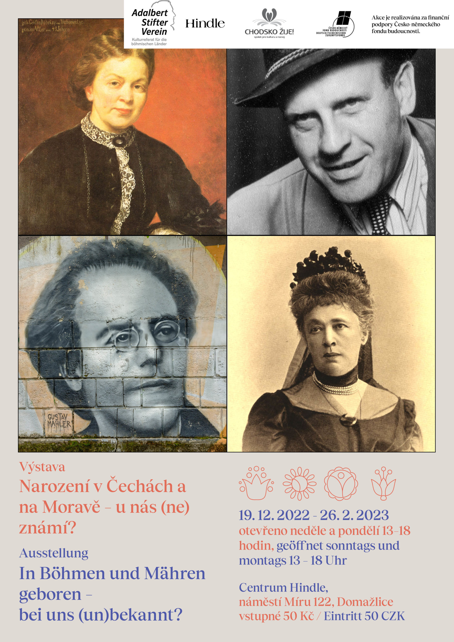 In Böhmen und Mähren – in der heutigen Tschechischen Republik – haben über Jahrhunderte hinweg Tschechen, Deutsche und Juden beiderlei Nationalität zusammengelebt. Die Ausstellung stellt einige der Persönlichkeiten vor, die dem deutschböhmischen Sprach- und Kulturkreis des 19. und 20. Jahrhunderts entstammen.