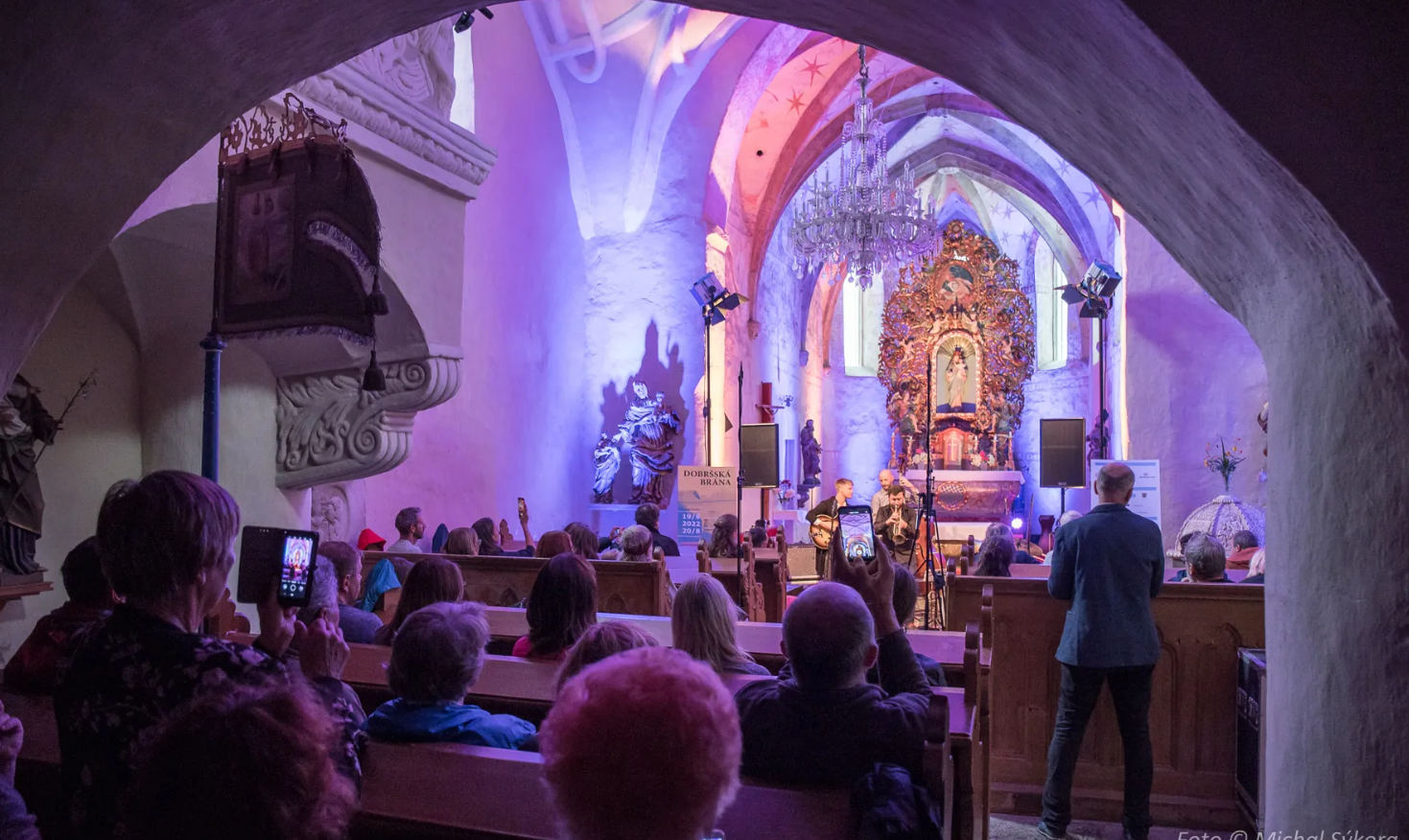 In der örtlichen Kirche findet in Kammeratmosphäre ein Konzert des Duos Vít Nermut und Michal Hrubý statt, das dem Publikum Musik präsentiert, die von mittelalterlichen Themen aus dem tschechischen, italienischen und spanischen Umfeld in klanglich vielfältiger Verbindung mit der Welt der zeitgenössischen freien Improvisation inspiriert ist.
