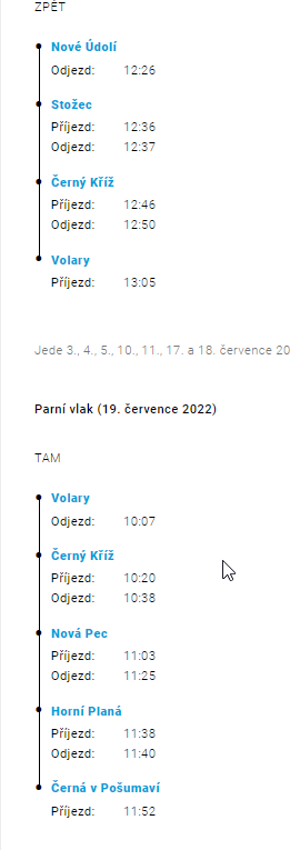 Nach Wallernland kehren die Dampfzüge zurück! Durch die malerische Böhmerwälder Landschaft fahren sie Sie durch an den Wochenenden. Historische Züge mit einer Dampflokomotive „Kaffeemühle“ an der Spitze fahren die Reisende von Volary nach Lenora, und samstags auch von Volary nach Nová Pec und sonntags von Volary nach Nové Údolí.