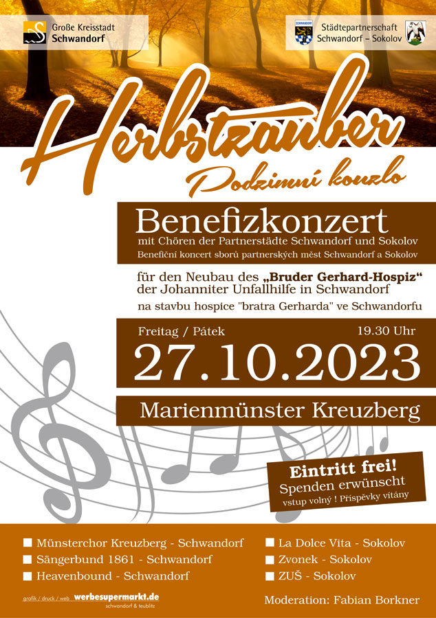 Das Benefizkonzert der Chöre der Partnerstädte Schwandorf und Sokolov unterstützt den Neubau des „Bruder Gerhard-Hospiz“ der Johanniter Unfallhilfe in Schwandorf.